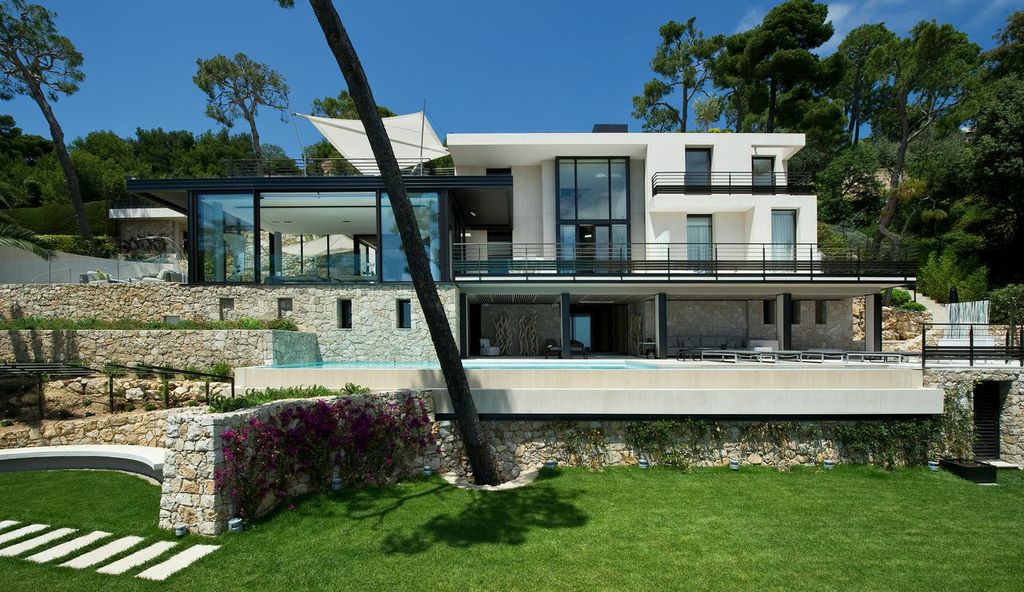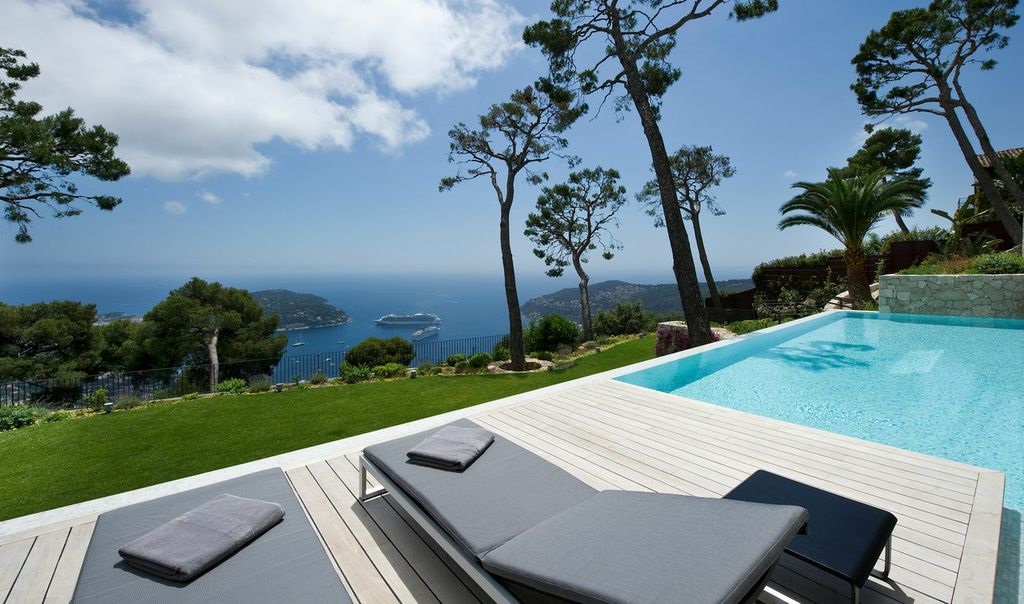 This extraordinary French villa is set high on the hillside overlooking the Bay of Villefranche in the exclusive resort area of Domaine de Castellet.