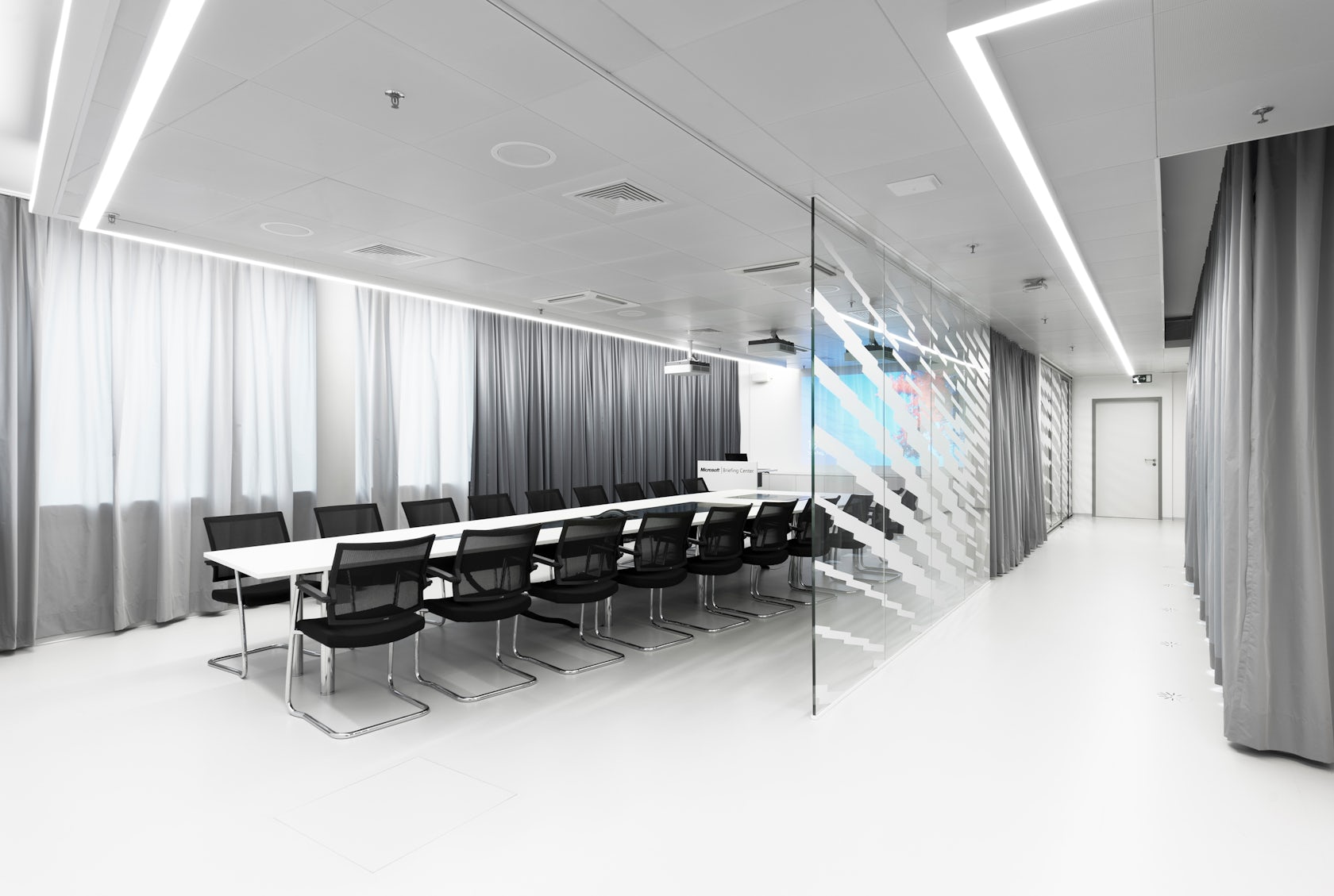 Microsofts Briefing Center In Wallisellen Switzerland. Microsoft's office building, in Wallisellen, Switzerland, are enjoying the recent completion of a superb Briefing Center, by Stuttgart based firm Coast Office Architecture. Central undulating furniture pieces zone and define the space allowing for different communication platforms to happen in the product lounge.